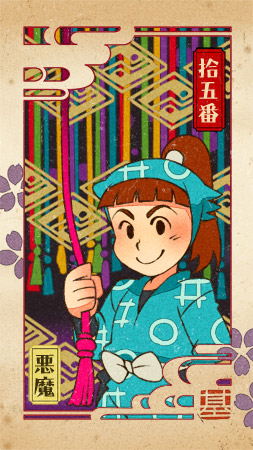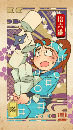 割烹着で炊事な図案と迷ってたんですが、タロットぽいほうを選んでおきました。
