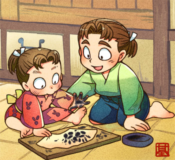 お兄ちゃんの手形扇子はきっちり綺麗に押してあって、弟のは不ぞろいぐちゃぐちゃでですね…(エンドレス)