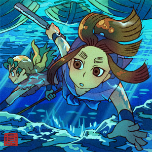 水中とかあまり描かないので、どうやって描こうかな、と思案してたので