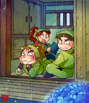 お前ら、そんなとこで空睨んでたって、止みやしねーんだぞ!