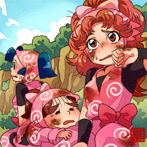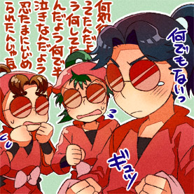 団扇のかわりに忍たまの友持ってるところがまた可愛い。