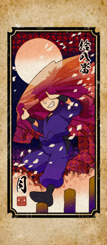 見るたびに顔が変わる不安定なイメージ、という点では三郎っぽいかなということで月の札は三郎です。
