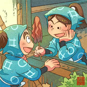 鬼蜘蛛丸さんと、カメ子ちゃんのイラストへ感想ありがとうございます。